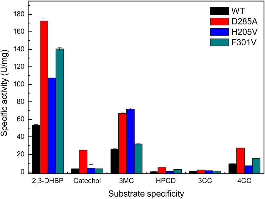 图2. 酶和突变体的底物特异性