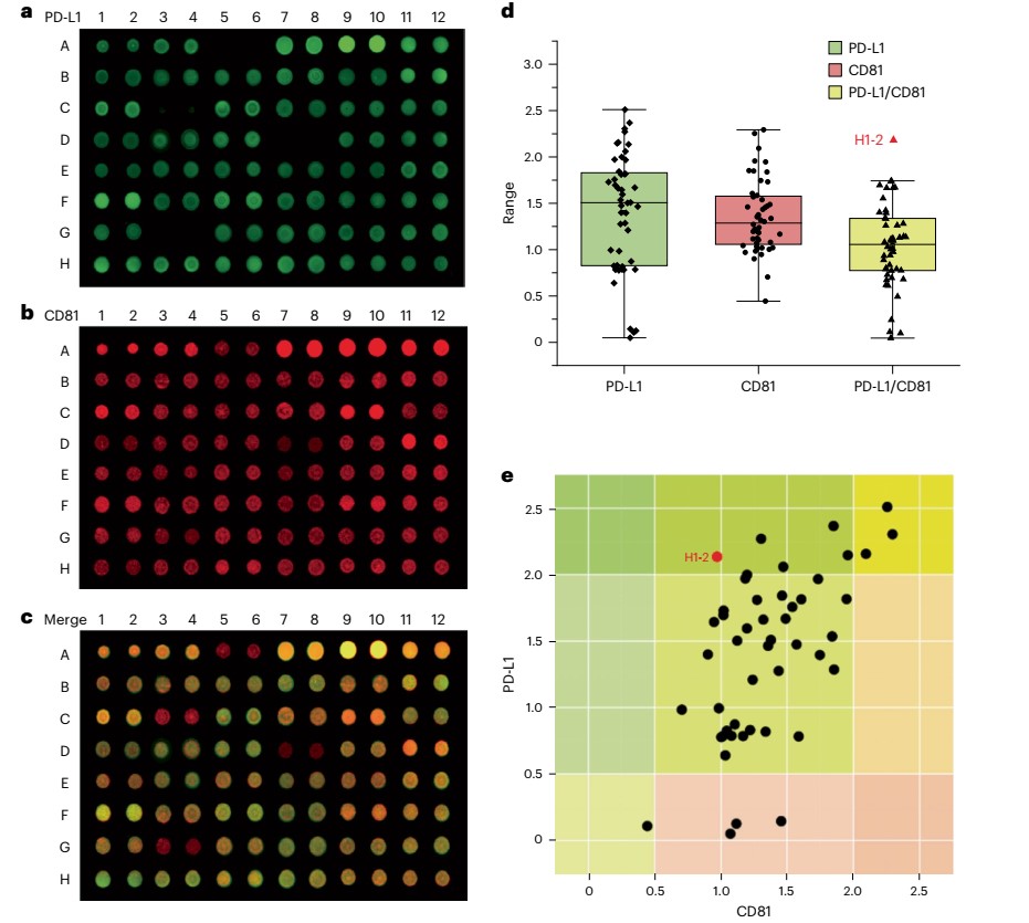 图2外泌体阵列对血浆外泌体的高通量捕获与原位蛋白免疫分析。