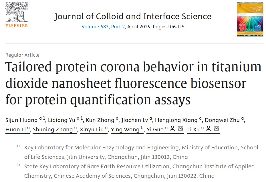 分子酶学工程教育部重点实验室徐力教授、郭轶教授团队发现,Tween-20分子能够改变二氧化钛纳米片(TiO₂-NS)对蛋白质的吸附行为,并由此开发了一种Tween-20介导的定制蛋白质冠方法,并以此实现对微量蛋白的定量。基于密度泛函理论(DFT)计算和分子对接的模拟结果,Tween-20可以通过聚乙二醇嵌段的亲水端与TiO2-NS表面相结合,同时疏水端与微孔板上吸附蛋白的疏水区域结合,从而增强二者的相互作用。在此基础上,建立了一种反向捕获策略,即通过微孔板上结合的微量蛋白捕获缓冲液中的TiO2-NS,进一步利用捕获的TiO2-NS的光催化作用产生可检测的荧光信号,实现对蛋白的定量分析。研究论文“Tailored protein corona behavior in titanium dioxide nanosheet fluorescence biosensor for protein quantification assays”发表在国际学术期刊《Journal of Colloid and Interface Science》上。论文第一完成单位为葫芦娃视频