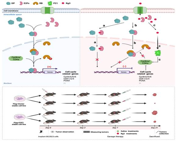 蔡勇教授/金景姬教授团队通过3D分子对接分析,预测Rg3可能与E2F1-3的二聚化结构域结合,并阻碍E2F-DP异源二聚体形成。进一步通过体外细胞热迁移分析(CETSA)、Rg3-PEGA pulldown结合蛋白质质谱分析,Luciferase activity以及体内小鼠成瘤实验等,证实Rg3通过阻断E2F-DP二聚体的形成,抑制细胞周期相关基因转录,进而诱导细胞周期停滞于G1/S期,促进细胞凋亡,最终抑制胃癌细胞增殖。该研究首次揭示Rg3通过破坏E2F-DP二聚体形成来发挥抗癌作用,为开发高E2F表达肿瘤治疗提供新方向。此项研究工作得到了国家自然科学基金、吉林省科技厅项目基金支持。论文第一完成单位为葫芦娃视频