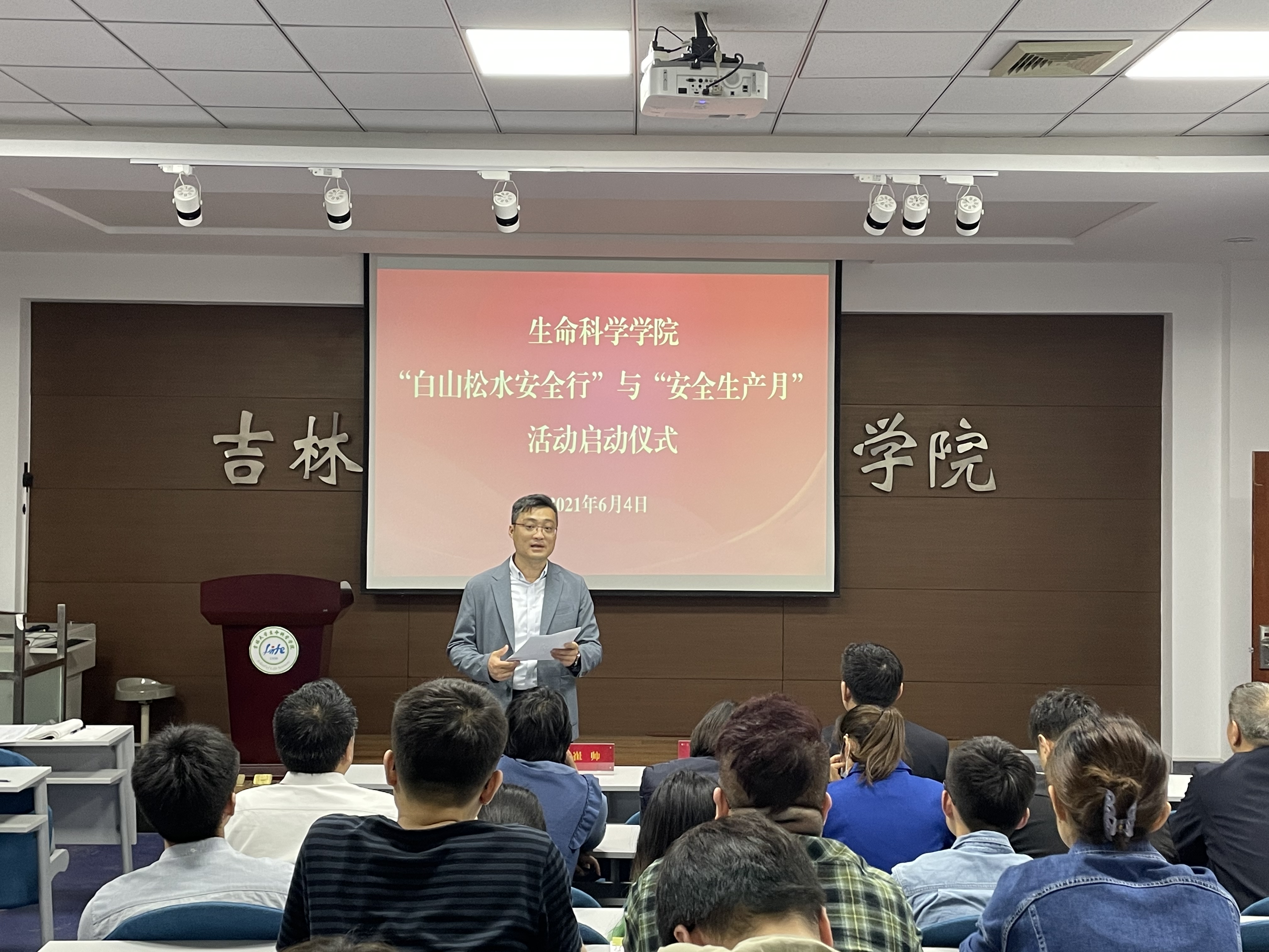 “安全生产月”和“白山松水安全行”活动启动仪式在生命科学楼107会议室举行。党委书记白宇、副书记林相友、实验室安全管理小组成员以及各实验室安全协管员出席仪式。会议由行政副院长崔帅主持。