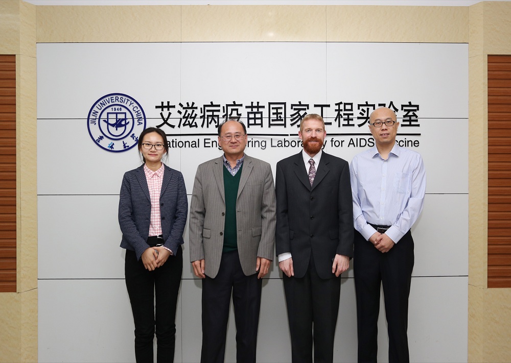 活动结束后高峰教授为达瑞尔•希尔博士介绍了艾滋病疫苗实验室并合影留念。此次来访为双方合作打下了良好基础,有利于进一步提升我院国际化水平。