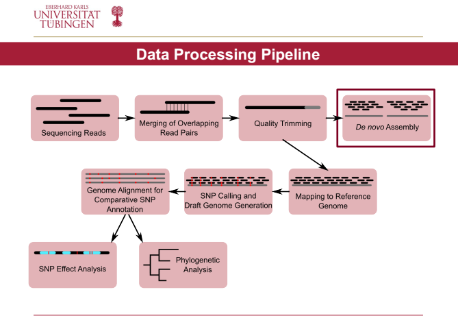 本次系列课程的名称为“Introduction into Computational Pathogenomics”,其主要内容为古代细菌基因组的数据处理方法。在为期三天的课程中,Herbig博士向大家介绍了古基因组的实验流程、各种数据处理手段的原理及意义、基因序列的比对与质量控制、SNP位点信息的获取与分析,并简要介绍了古致病菌基因组的系统发育分析和宏基因组分析。在本次系列课程中,Herbig博士向师生们解答了有关不同格式基因组数据的应用、区别与关系,比较了几种序列比对软件的利弊,提出了进行基因组数据质量控制过程中的注意事项,讲解了系统发育分析和宏基因组分析的基本原理和主要技术手段。在每堂课的课后,Herbig博士都解答了师生提出的问题,并与大家进行了亲切友好的谈话。
