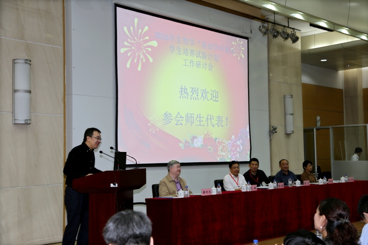 成功召开。来自北京大学、清华大学、中国科技大学、复旦大学、上海交通大学等全国16所实施生物学科“拔尖计划”高校的学科负责人和师生代表近百余人参加了本次会议。
