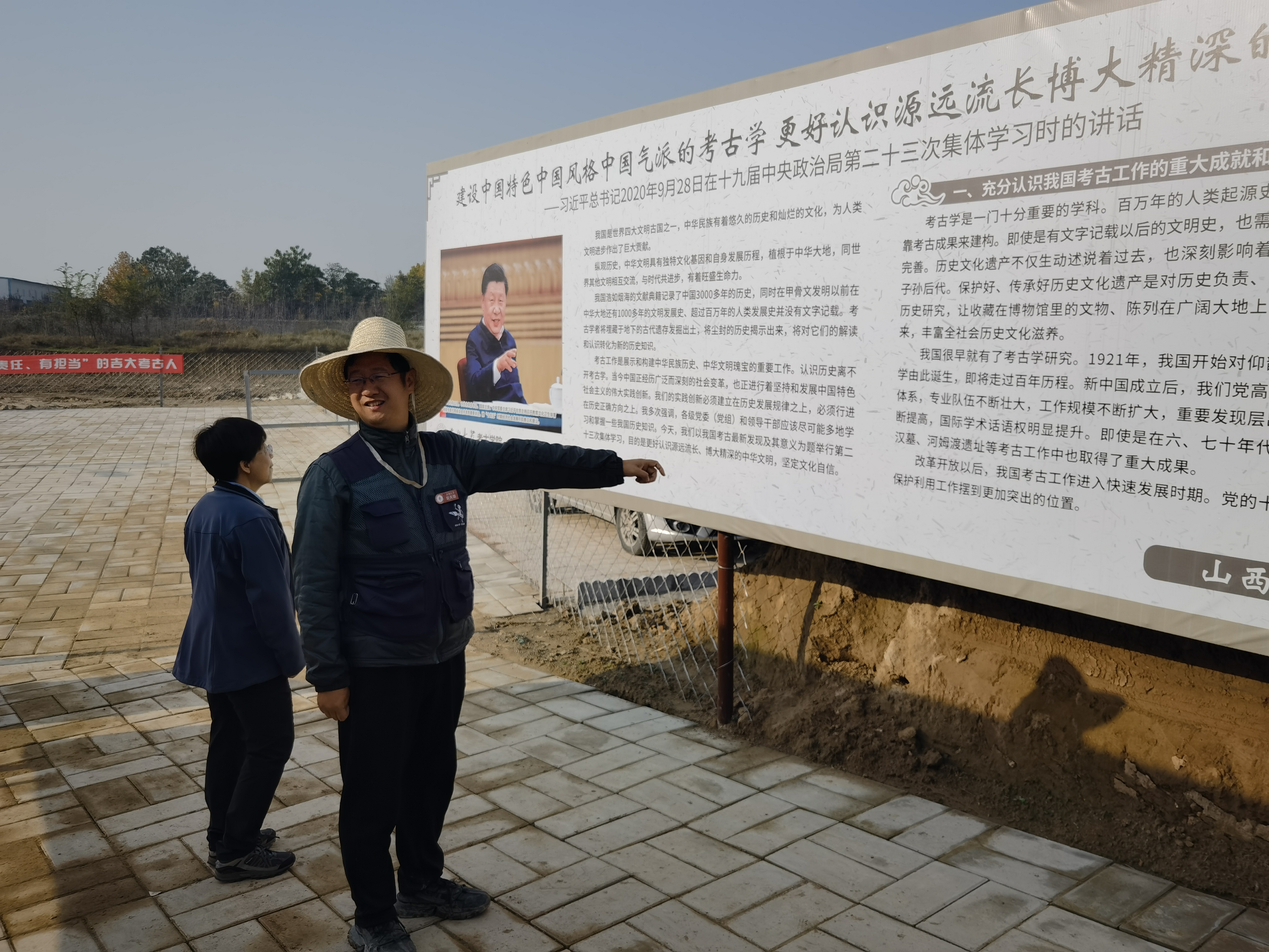 10月30日上午,考察小组赴考古工地走访调研,现场参观科研工作实况,现场工作人员详细介绍、细致讲解。在考古现场白宇提出,习近平总书记强调考古学科对于展现中华文明起源、发展脉络、灿烂成就和世界文明具有重要意义,学科发展质量关乎人才培养、关乎学术科研、关乎文化自信。要用党的建设引领考古学与生物学学科交叉向更深、更远发展,不断用党的建设加强队伍建设,创新活动模式、构建交叉学科发展氛围、建立科学机制、发挥示范效应,为实现学校跨越式发展、建设创新型国家提供思想基础、实践路径和坚实保障。让党旗在考古一线高高飘扬,在科研一线熠熠生辉。
