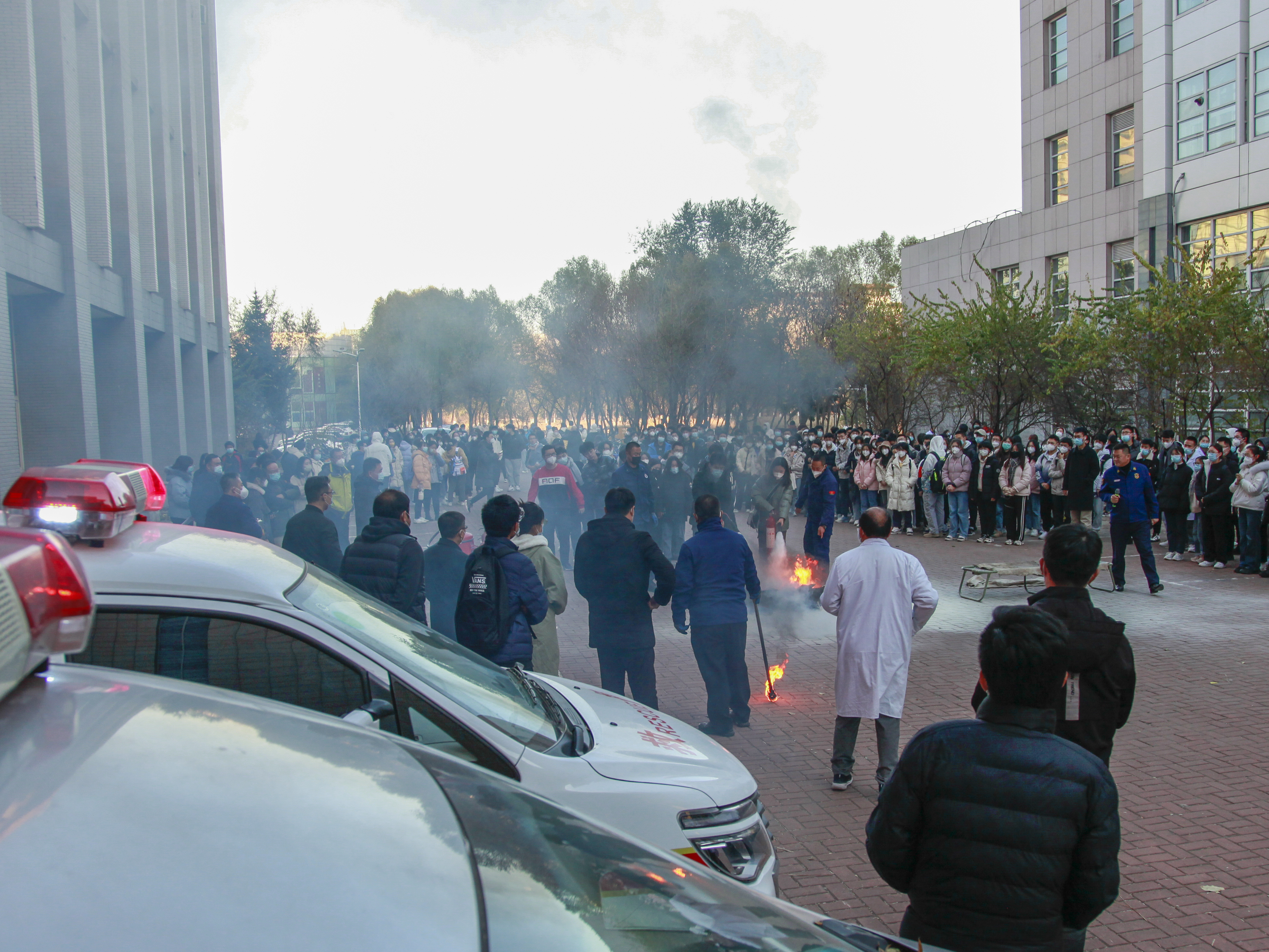 15:30分,“火警信号”发出,各楼层迅速组织师生进行疏散,并按照预案进行火灾报警、人员疏散自救、抢救伤员、扑救初级火灾,全体师生在应急疏散中积极配合,听从指挥;各岗位人员各司其职、各尽其责、分工明确、有序地完成了疏散活动。在灭火演练过程中,董立明详细介绍了各种类型灭火器和灭火毯的使用方法及注意事项,参与师生均能够遵守操作规程正确实施演练活动。通过此次消防安全应急疏散和灭火演练,进一步强化了师生处置突发事件能力和应变能力;提高了师生在火灾突然来临时的应急防护与逃生自救能力;强化了消防安全意识,积累了集体疏散、消防救助、应急组织等实战经验。
