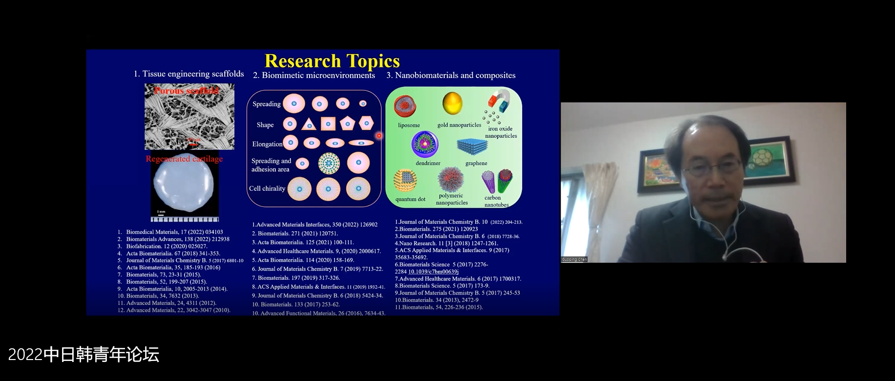 论坛围绕“生物医药与健康”和“生物医学工程和生物技术”议题,由来自韩国汉阳大学的Hyungshin Yim教授、Jae-Yeol Joo副教授、延世大学Na-Young Song 助理教授、韩国建国大学Jinhong Wie 助理教授、日本筑波大学陈国平教授、大阪大学吕玉泉副教授、日本横滨市立大学Yongchan Lee助理教授、日本兵库医科大学Hirosato Kanda助理教授、段韶琪博士后、德国马克斯普朗克生物物理研究所吴迪博士后、葫芦娃视频