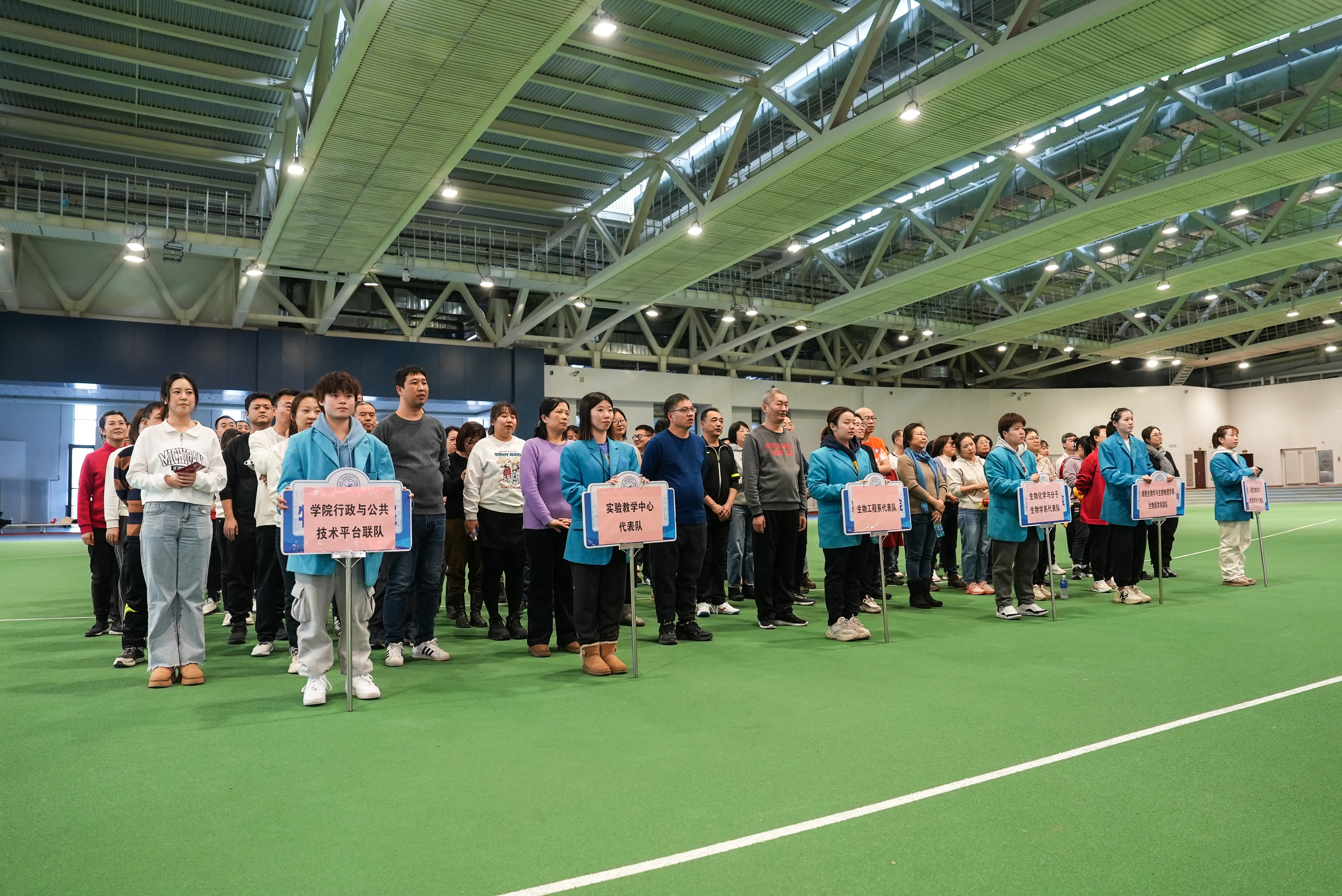 随着发令枪响,趣味运动会正式拉开帷幕,“同舟共济”的队伍在欢呼声中冲出起点,绽放学院教师的别样风采。