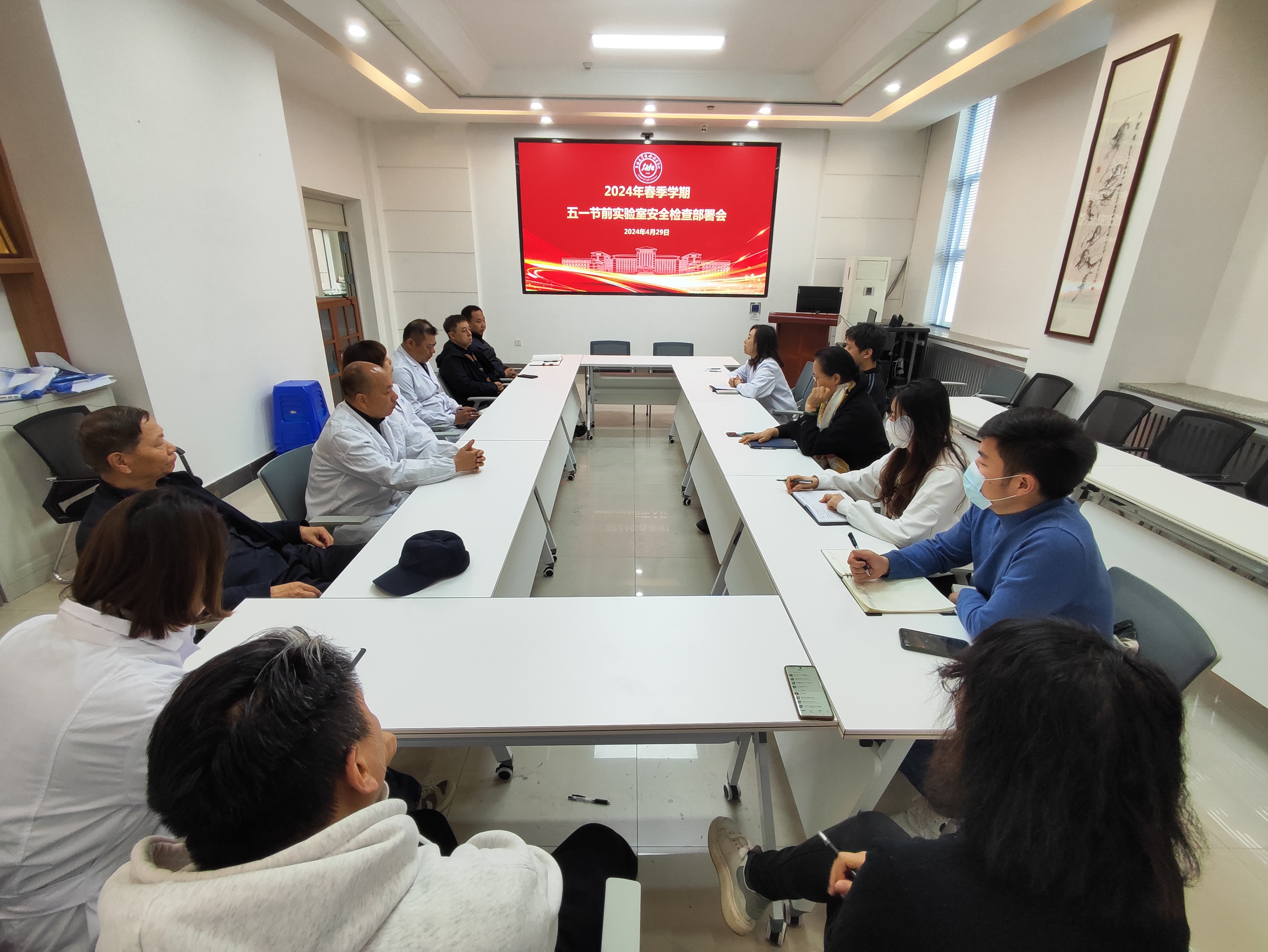 检查工作部署会上,郑琳表示,临近“五一”假期,要求各实验室做好假期值班安排,持续加强落实安全责任,杜绝实验室安全隐患;保证每一次检查发现的安全隐患能够及时落实整改闭环;根据学校保卫处关于开展全校建筑设备间消防安全隐患专项排查整治相关要求进行自查自改。