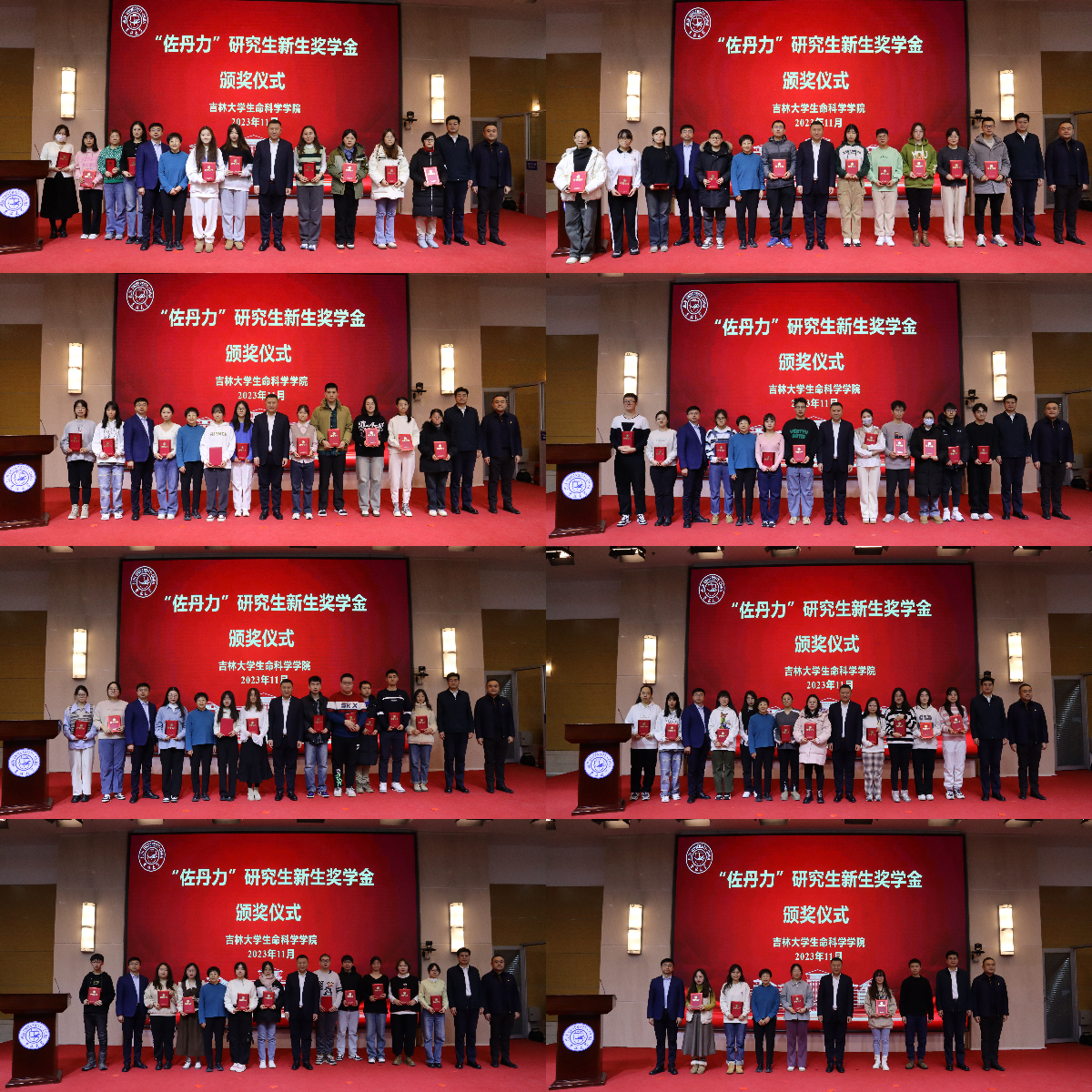 崔帅宣读获奖学生名单,韩丹、于湘晖、白宇、于爱国、邵俊涛共同为78名获奖研究生颁发证书,并与其合影留念。