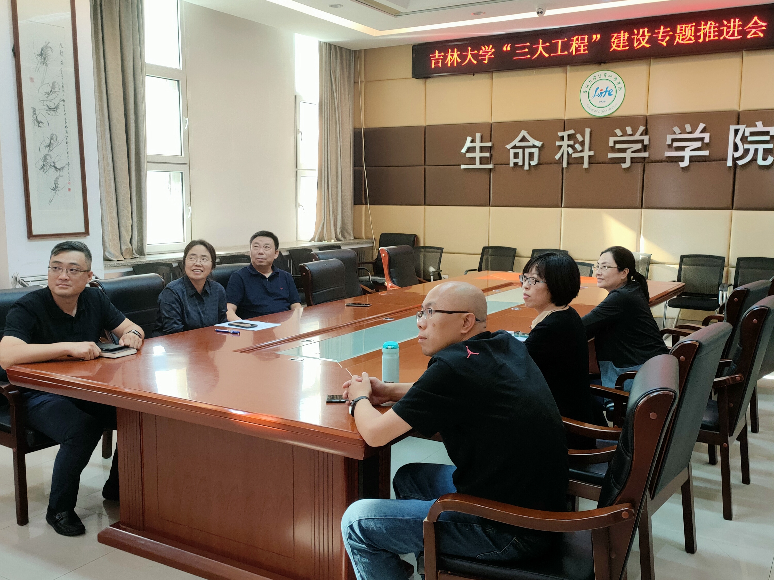 党政领导班子成员分别在主会场、分会场参会。在认真学习了校领导关于“三大工程”的介绍以及校党委书记姜治莹的讲话后,学院领导干部对标学校“三大工程”战略部署,结合具体分管工作,就如何立足本职,在学院层面推进“三大工程”建设掀起了热烈讨论。