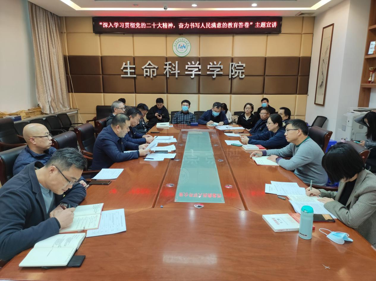 最后,围绕党的二十大对教育科技人才工作的部署,白宇钩玄提要、剖玄析微,同与会同志畅谈体会。他指出这是党代会报告首次在党的中心任务中,将教育、科技、人才作为三位一体统筹安排、优先发展,放到突出的位置,具有重大意义。这既是理论和实践上的创新,更是我们在发展过程中,对建设中国式现代化的规律性认识和把握。他强调,广大同志要深入学习领会党的二十大精神的核心要义,准确把握党中央对科技创新和教育强国、科技强国、人才强国战略的新部署新要求,紧随国家发展急迫需要和长远需求,深刻把握生物学科的责任使命、发展机遇和前进方向,坚决落实“四个重要任务”,坚持立德树人,以人民为中心发展教育,全面提高人才自主培养质量,着力实现高水平科技自立自强,努力为建设中国特色、世界一流大学,加快实现高水平科技自立自强作出应有贡献。
