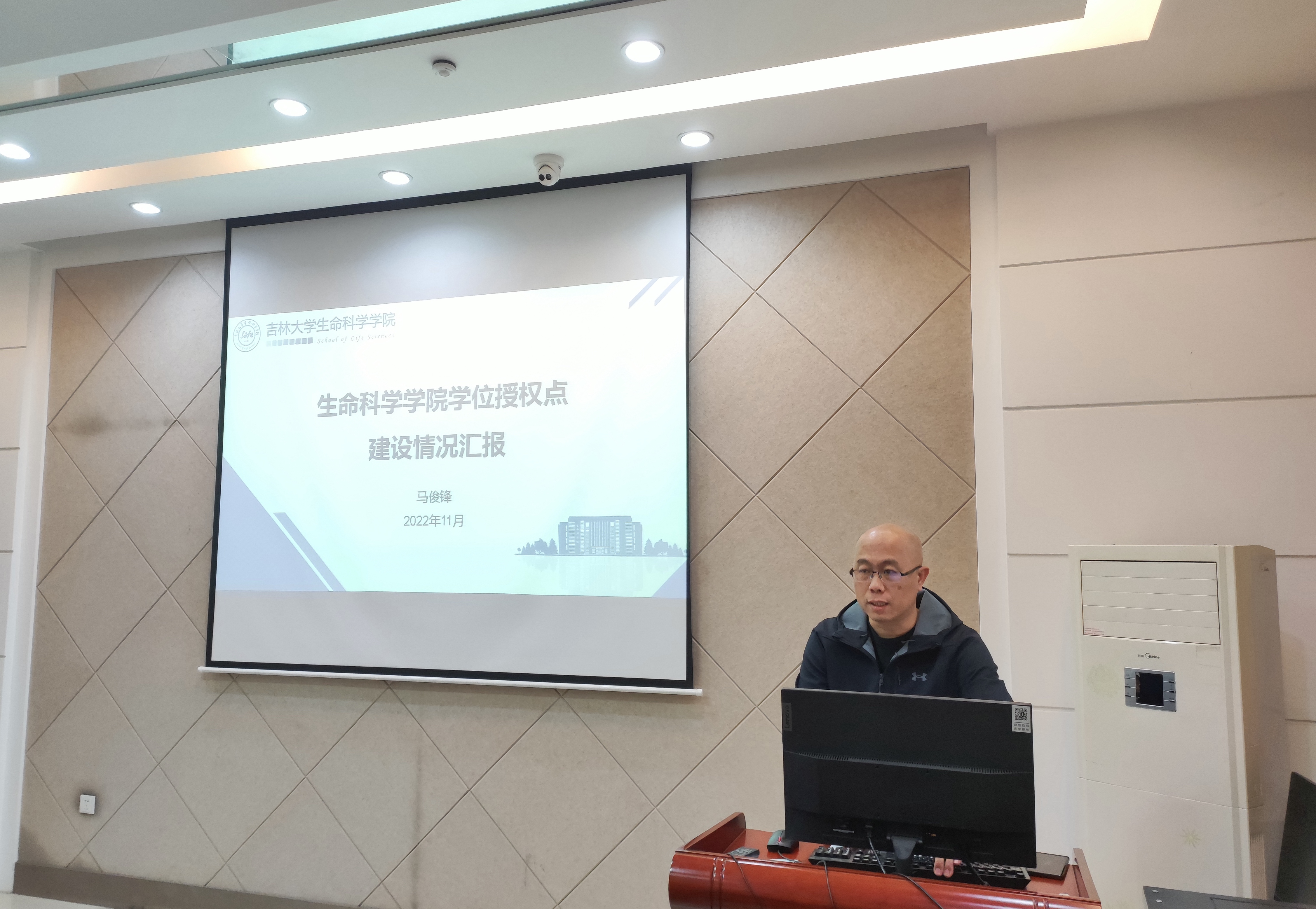 生物学学位分委会主席、学院副院长马俊锋汇报学院学位授权点建设相关情况。他从学院学位授权点的历史沿革、学院“基础学科”与“学科交叉”两条发展脉络入手,全面介绍了葫芦娃视频