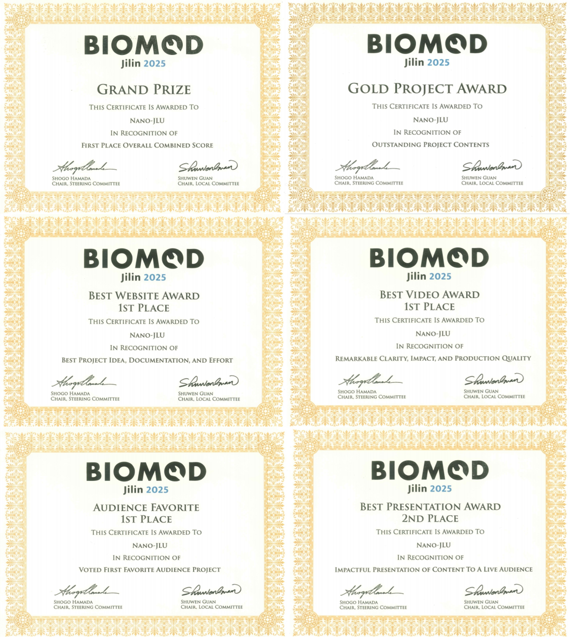 Nano-JLU 团队始建于 2016 年,十年间 8 次代表学校参赛,累计获得 5 金 3 银及 11 项单项奖,70 余名本科生通过赛事积累科研经验。未来,团队将继续深耕生物与化学交叉领域,为拔尖创新人才培养与学校 “双一流” 学科建设贡献更多力量。