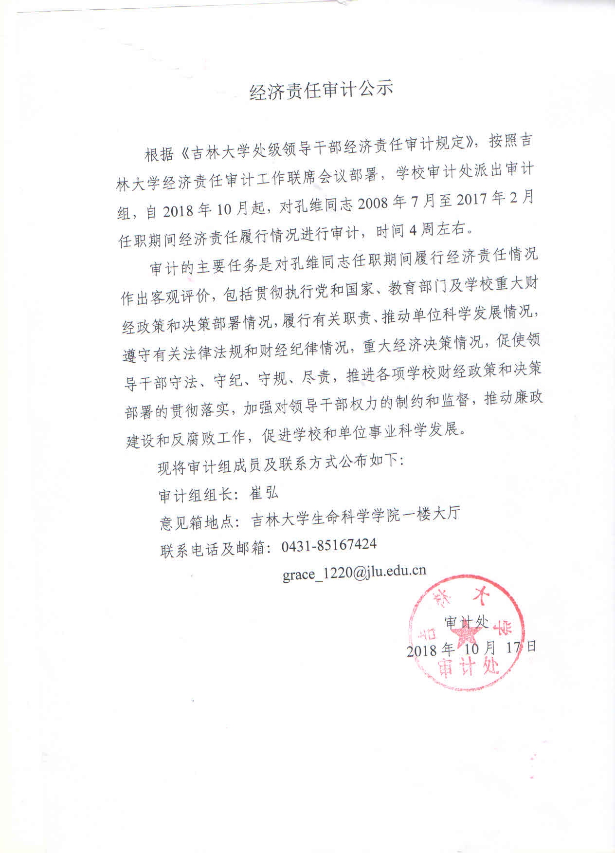 经济责任审计公示