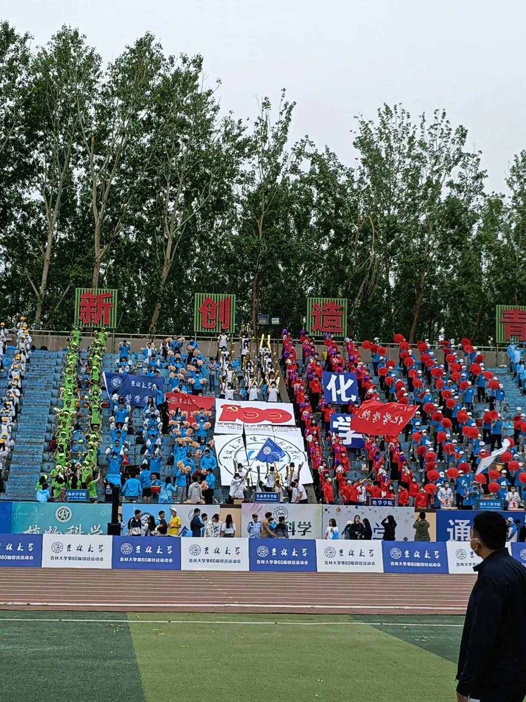 运动员在场上挥洒汗水,为院争光的同时,场边的观众们也同样亮眼。我院观众身着统一服装,挥舞着手中的加油棒为场上的运动员呐喊加油,并在观众席上拼接出了院徽和庆祝中国共产党成立100周年的标识,以洋溢的青春,饱满的热情庆祝中国共产党百年华诞。
