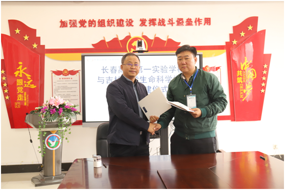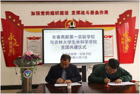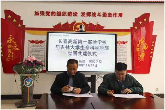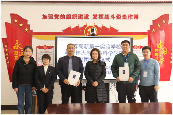与长春高新第一实验学校党团共建交流暨大学生志愿服务基地签约仪式在高新第一实验学校会议室举行。参加签约仪式的有长春高新第一实验学校校长兼党支部书记张安辉、党支部副书记李兰君、党政办公室主任魏盛楠,葫芦娃视频