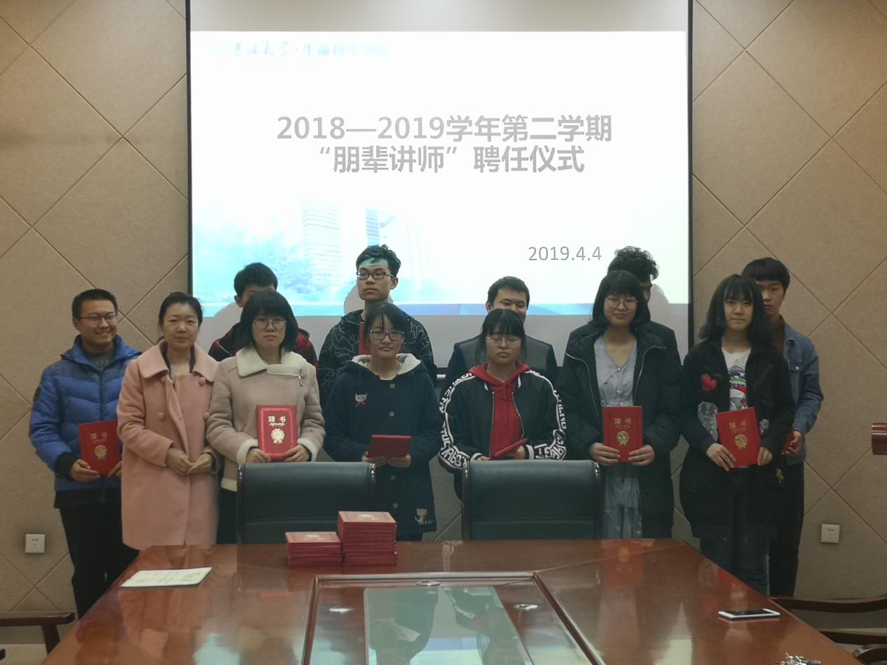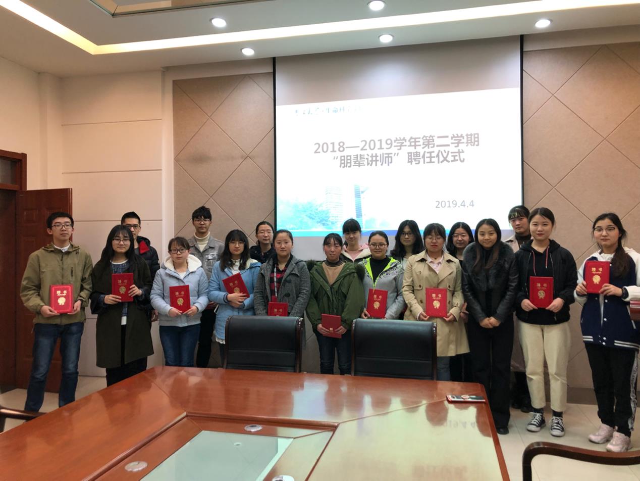2018-2019学年第二学期朋辈讲师聘任仪式。学院党委副书记崔帅、学工办主任张春阳、辅导员马莹以及2019年葫芦娃视频