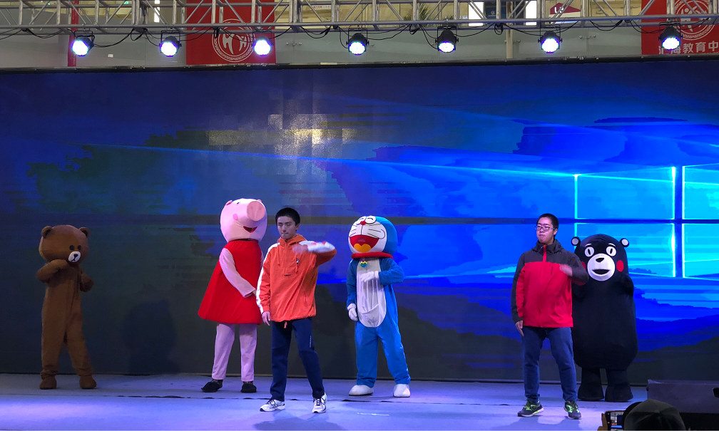 活动伊始,小组成员们准时到达了场地,开始布置。为增加趣味性,成员们还特意租赁了玩偶服装,并为观众跳起了“囧架架”,吸引很多观众观看。
