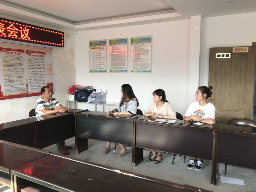 8月5日上午,实践团成员与村支部书记在石山村村委会进行座谈,了解石山村的经济发展、社会福利和教育水平等方面的基本情况。