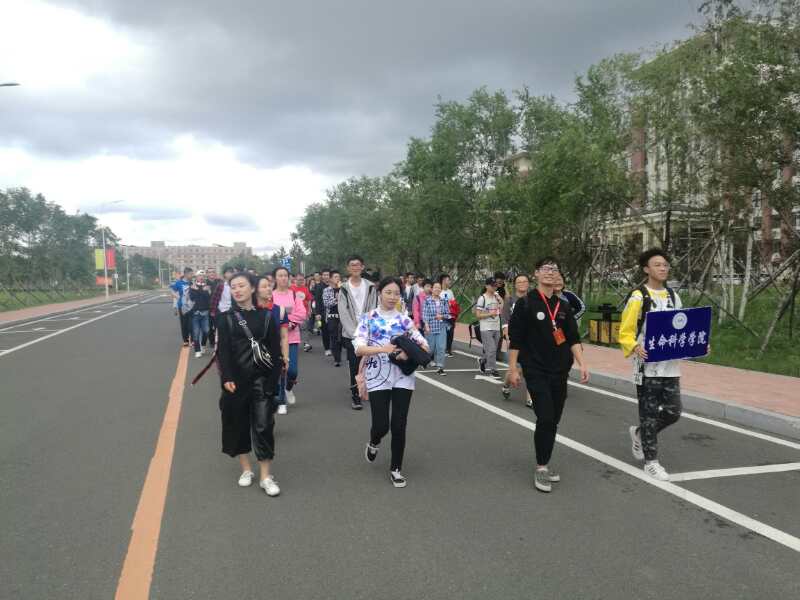 学生会主席丁是卯,团委副书记吴方帆,社联主席姜雪,社联管理部部长胡峻涵,2018级各班代班代团带领2018级全体新生游览了吉大校园。