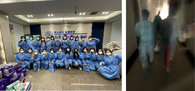 随着物资一车一车的抵达公寓门口,装的满满当当的物资将南苑四公寓的当志愿者的日程表也安排的满满当当。穿上防护服,志愿者们就开始了一天忙碌的日子。六点半开始早饭的餐和酸奶的分发工作,十一点半分发午饭及水果,下午两点开始发放饮用水,下午四点半开始分发晚饭和酸奶,晚上七点开始分发方便面......为了保障公寓内的每一位同学都能够拿到物资,做到不漏一人,不落一件,志愿者们不辞辛劳,逐层发放餐食和物资。60位平时看起来娇滴滴的生科女子,用她们纤细肩膀,抬起来一整日将近4000份盒饭,400箱矿泉水,三餐的水果以及每人一桶的泡面。每位女孩子都是家中的小公主,也是在学校担当起一楼安稳的战士!汗水浸透了衣衫,但也让我们更加相信我们定能克服此次难关。