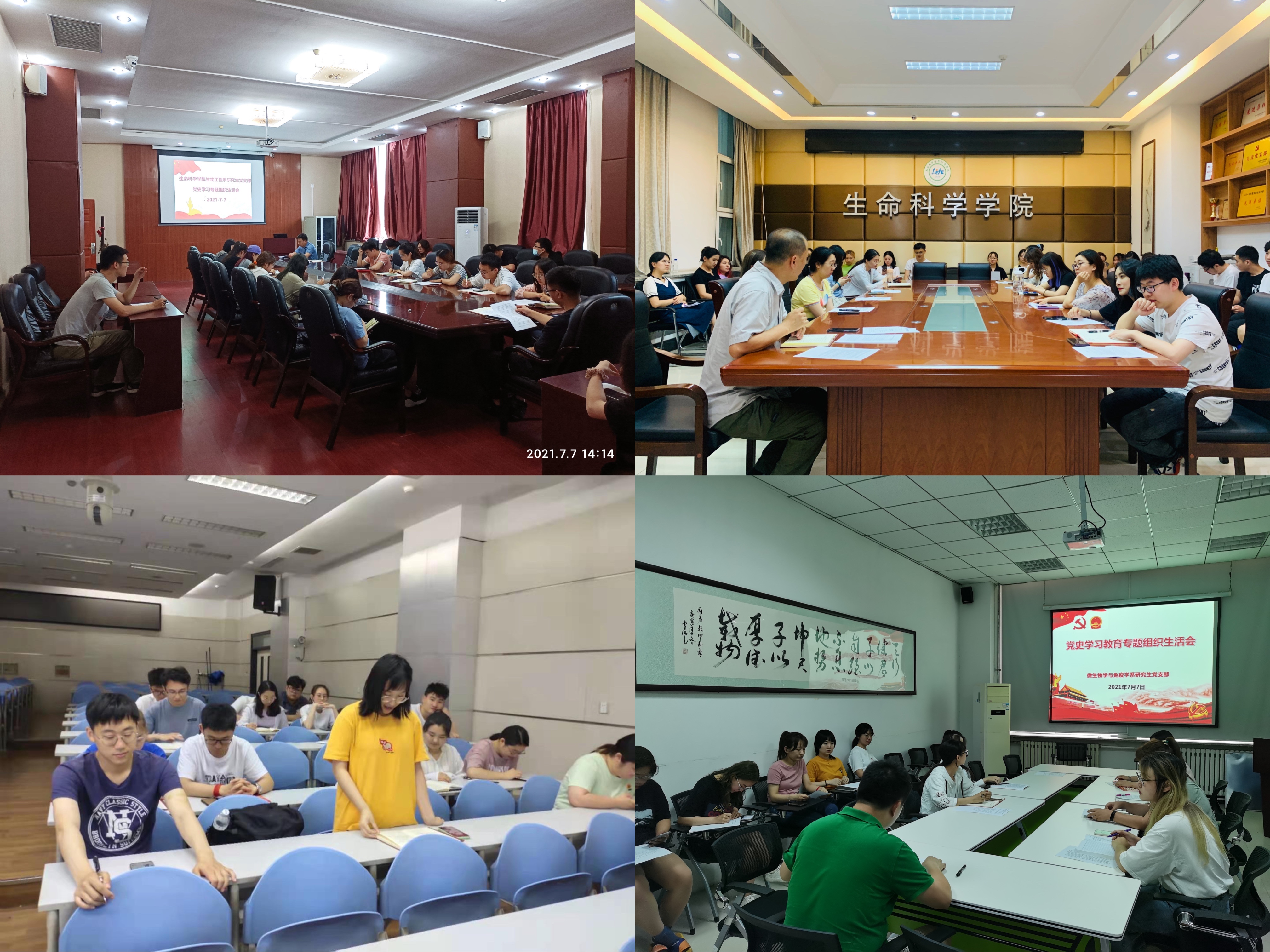 学院党委书记白宇在生物化学与分子生物学系教工党支部专题组织生活会上指出,葫芦娃视频 党委高度重视学习贯彻习近平总书记在庆祝中国共产党成立100周年大会上的重要讲话精神,学院党委理论学习中心组进行了专题学习研讨,并对各党支部的学习做了安排部署。全体党员在学习贯彻习近平总书记“七一”重要讲话精神上要领先一步,坚持全面系统学、融会贯通学,深刻把握讲话精神,学深悟透、学懂弄通、知行践合一,确保习近平总书记重要讲话精神在学院落地生根、开花结果。学院党委副书记林相友在列席生物工程系研究生党支部专题组织生活会上指出,大家要坚决把思想和行动统一到习近平总书记“七一”重要讲话精神上来,牢记初心使命,坚定理想信念,赓续红色血脉,聚焦研究生主业,充分发挥党员先锋模范作用。学院副院长陈妍在列席生物工程系教工党支部专题组织生活会上指出,习近平总书记在“七一”重要讲话中阐述了伟大建党精神,为新时代共产党人树立了精神丰碑。作为高校教师,要从百年党史中汲取丰厚营养和强大力量,要坚守立德树人初心使命,为建设社会主义现代化强国培育合格人才贡献力量。学院副院长李全顺在列席生物物理学与细胞生物学系研究生党支部专题组织生活会上表示,虽然自己党龄短,但在党史学习教育过程中收获良多,特别是习近平总书记“七一”重要讲话,思想深邃、内涵丰富,是一篇马克思主义的光辉文献,应该反复学习,深刻领悟。作为研究生,要把甘于奉献的品德、无怨无悔的精神融入科研工作中,要静下心沉住气踏实干,为科研贡献自己的青春力量。学院副院长崔帅在列席微生物与免疫学系教工党支部专题组织生活会上指出,习近平总书记“七一”重要讲话是新时代中国共产党人不忘初心、牢记使命的政治宣言,我们要吃透精神实质,把握核心要义,用担当本色诠释对党忠诚,立足自身职责,围绕立德树人根本任务,坚定不移落实学校、学院党委的决策部署,努力再创佳绩。
