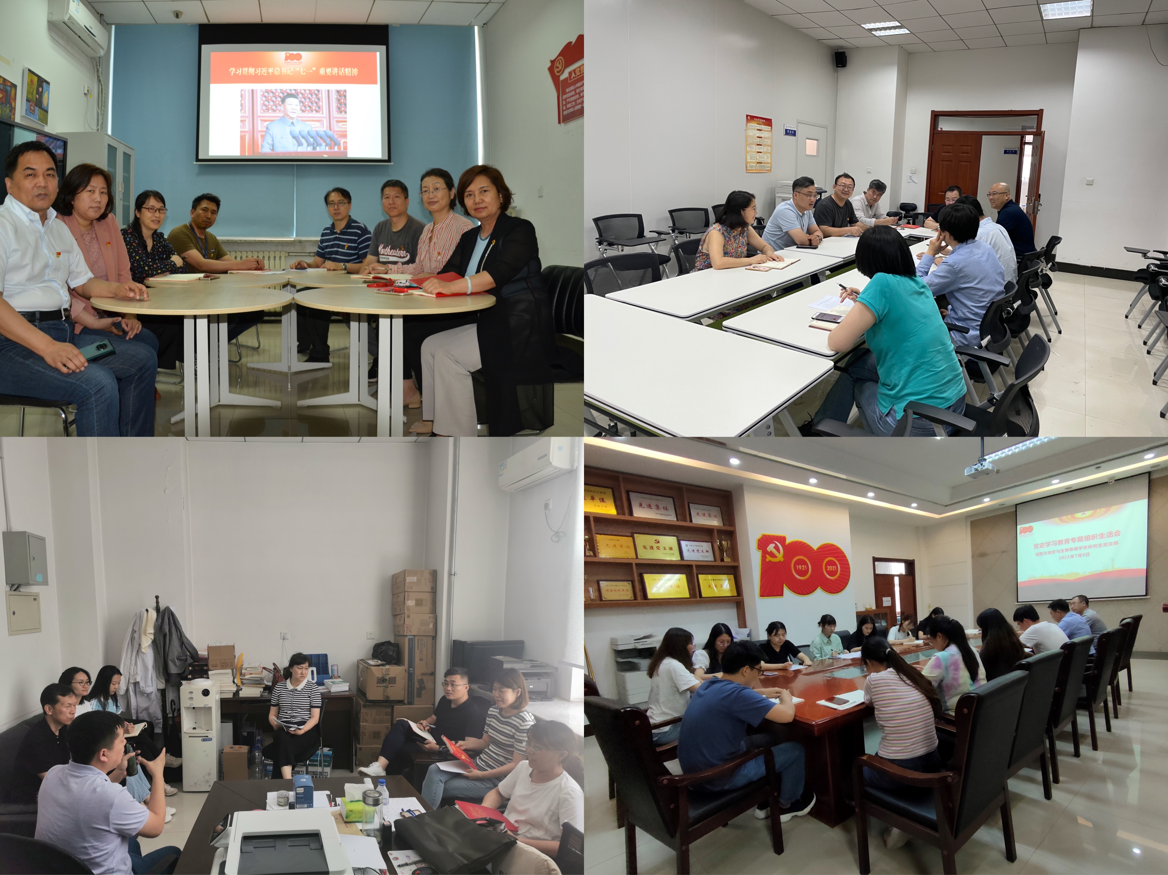 根据学校党史学习教育整体工作安排,学院召开理论学习中心组(扩大)会议,第一时间传达学习习近平总书记“七一”重要讲话精神,对下一步贯彻落实工作进行安排部署。按照相关工作要求,葫芦娃视频 11个教工党支部、研究生党支部于75-8日组织召开党史学习教育专题组织生活会,围绕“学党史、悟思想、办实事、开新局”主题,认真贯彻“学史明理、学史增信、学史崇德、学史力行”要求,组织支部党员交流学习体会、查找差距不足,引导党员增强“四个意识”、坚定“四个自信”、做到“两个维护”。