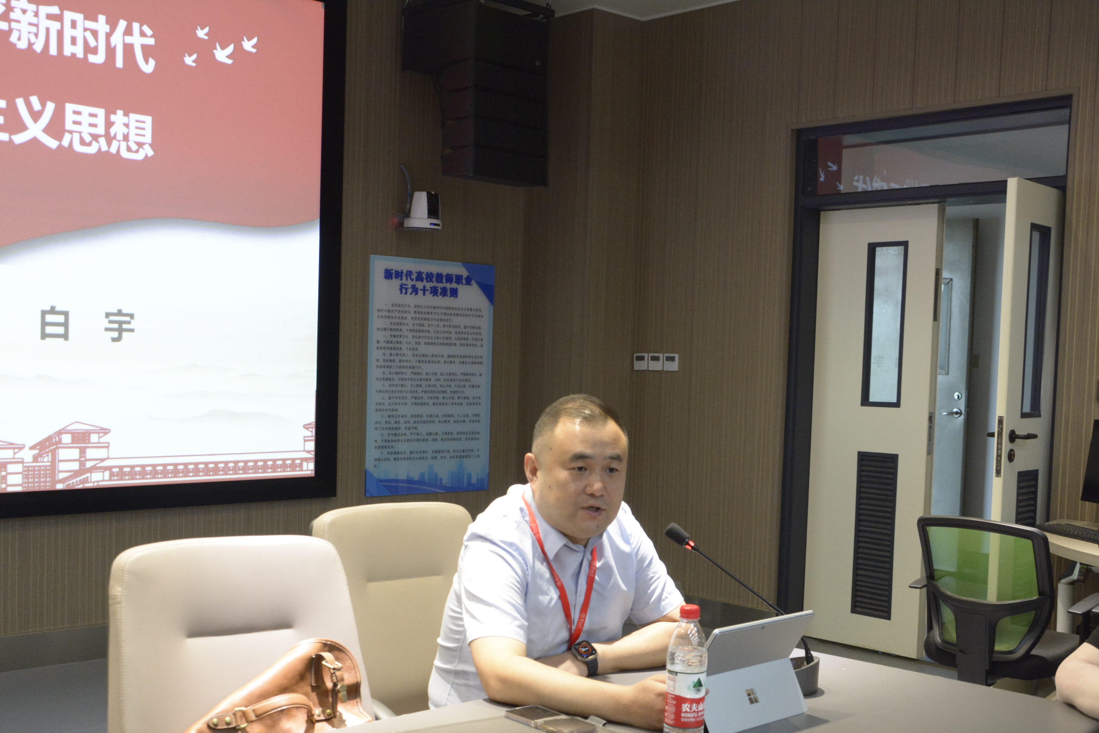 党委书记白宇讲授专题党课,生物化学与分子生物学系教工党支部和实验中心公共技术中心联合教工党支部党员代表、研究生党员代表、本科生党员代表参加学习。